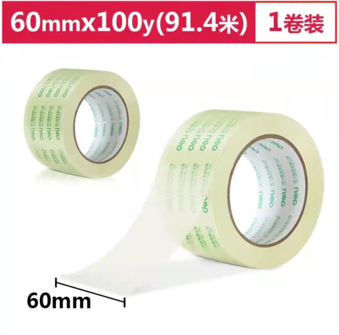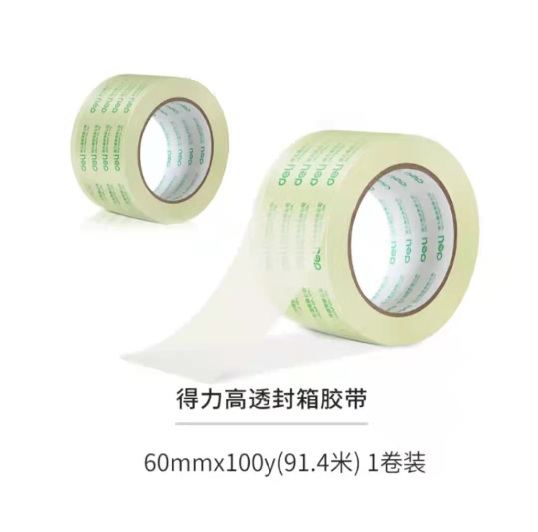 商品名称:得力(deli)高品质高透明封箱胶带/打包胶带 60mm*100y*50um(91.4m/卷) 单卷装 办公用品 30369