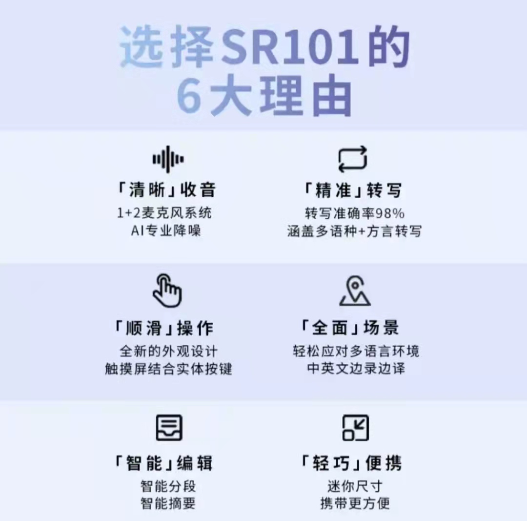 科大讯飞AI智能录音笔SR101 免费转写 中英文实时互转 触摸屏融合按键操作 专业降噪 16G+云储存 星空灰
