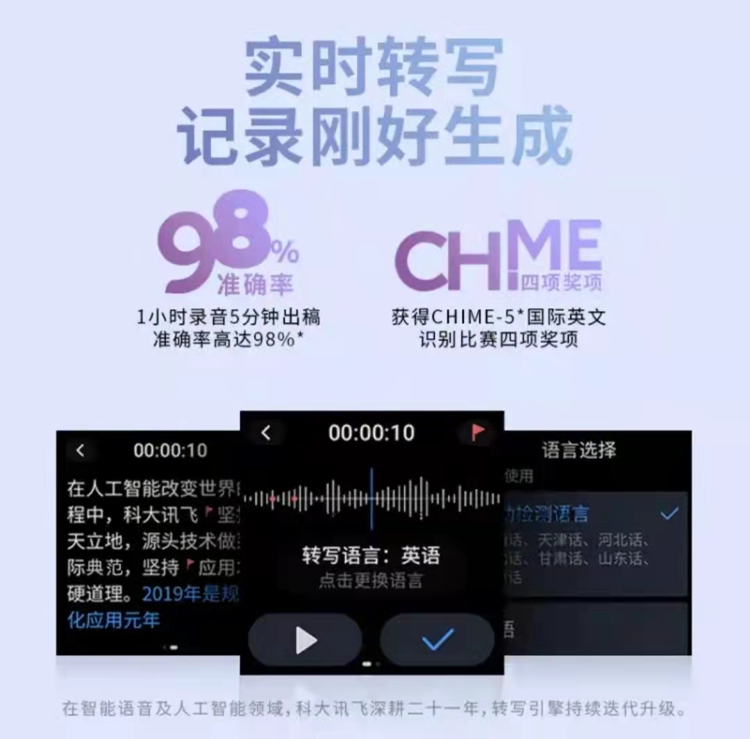 商品名称:科大讯飞AI智能录音笔SR101 免费转写 中英文实时互转 触摸屏融合按键操作 专业降噪 16G+云储存 星空灰