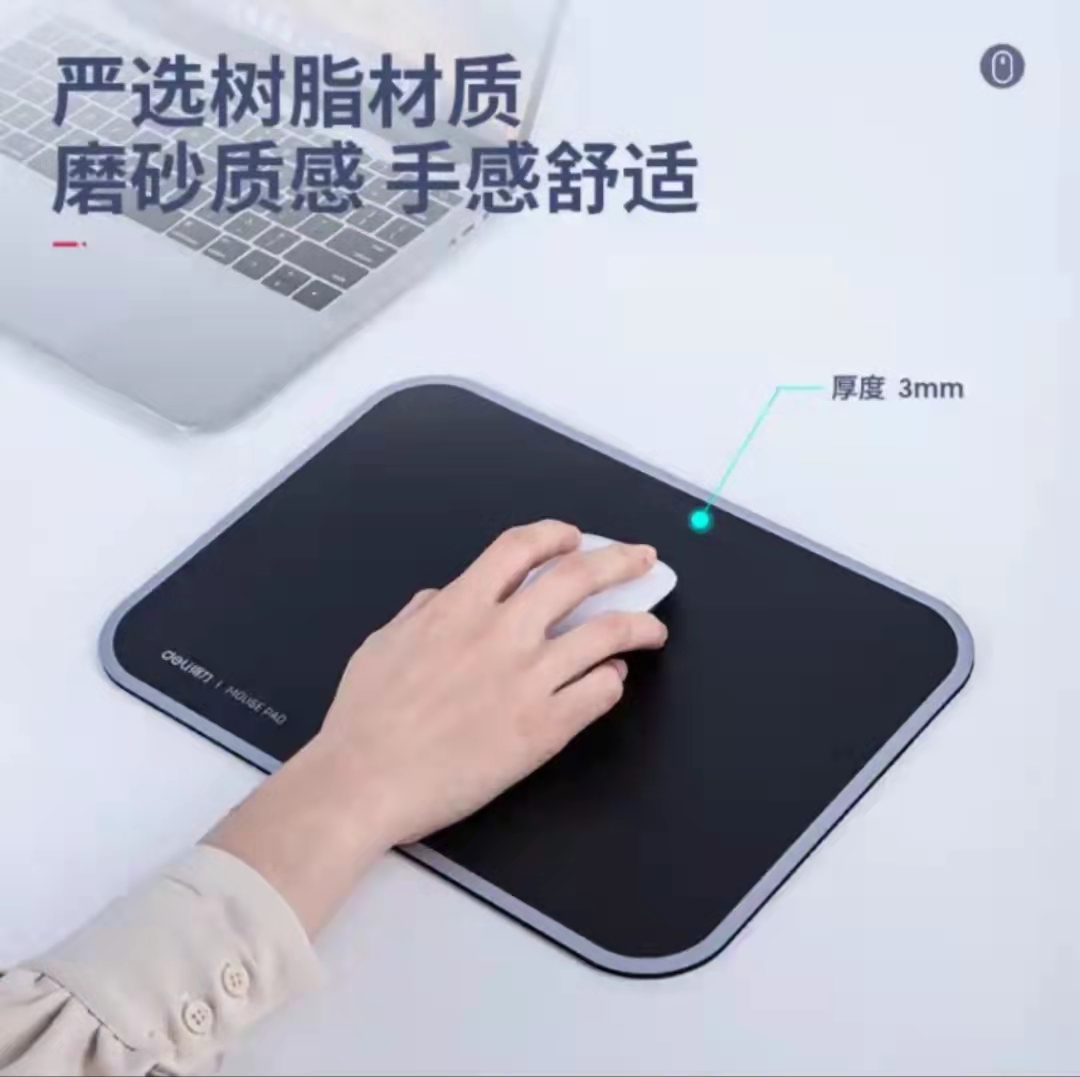 商品名称:得力(deli)300*220mm耐磨树脂鼠标垫 办公游戏通用 办公用品 黑色83007