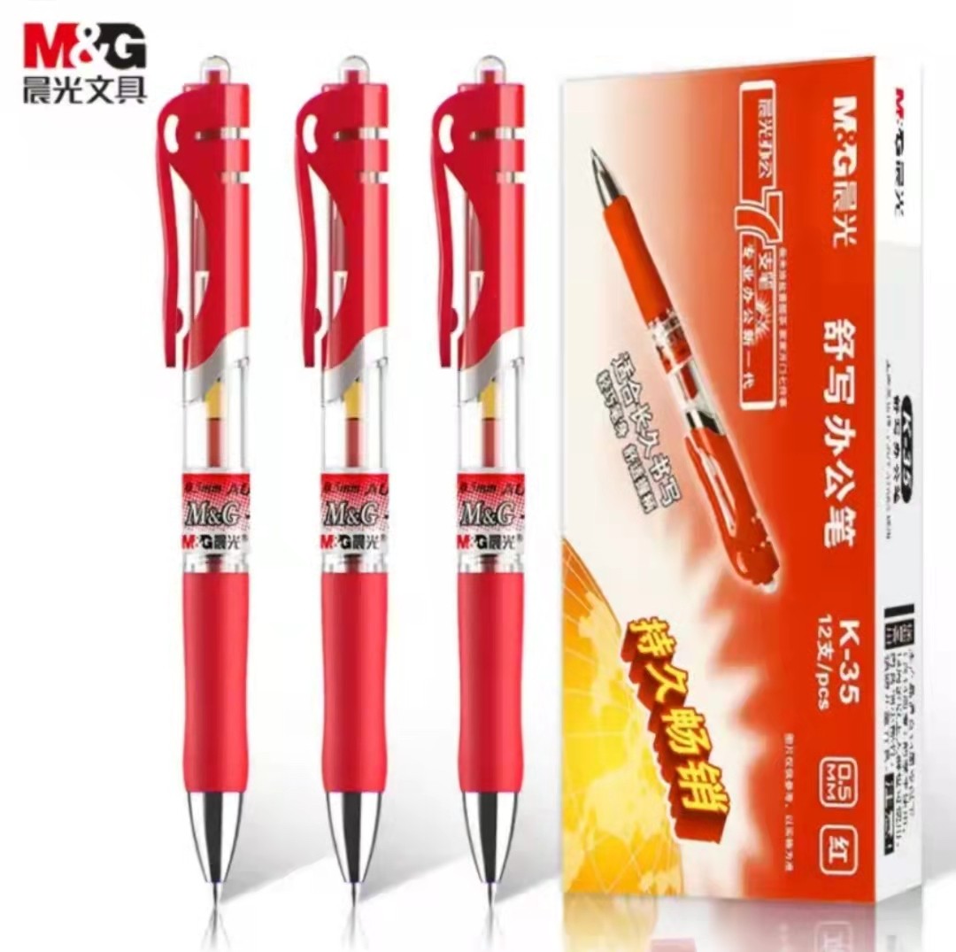 商品名称:晨光(M&G)文具K35/0.5mm红色中性笔 按动签字笔 经典子弹头红色水笔 12支/盒