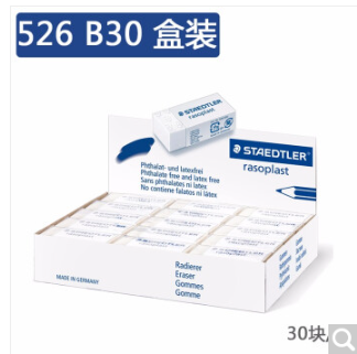 施德楼526系列橡皮 绘图 素描 写字考试胶皮橡皮擦 拭干净碎屑少 纸套包裹 526 B30 中号一盒30块