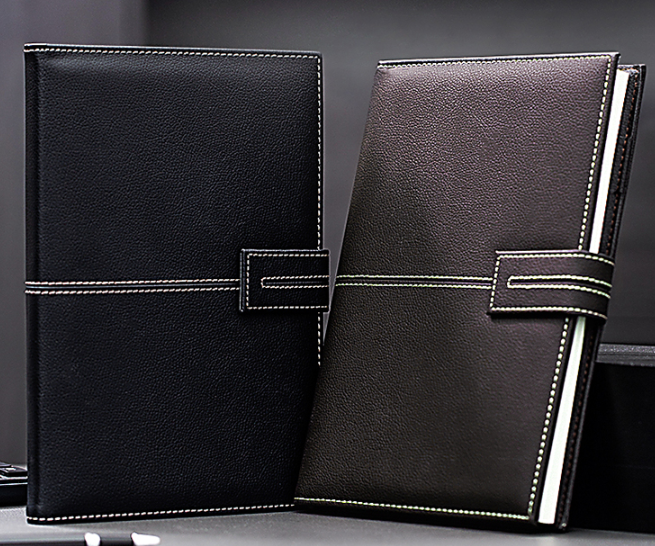 得力(deli)16K120张荔枝纹磁扣皮面本办公用品 商务记事本工作笔记本子文具 黑色3344