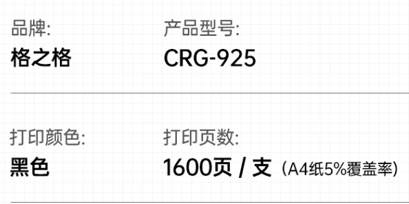商品名称:格之格CRG-925硒鼓适用佳能