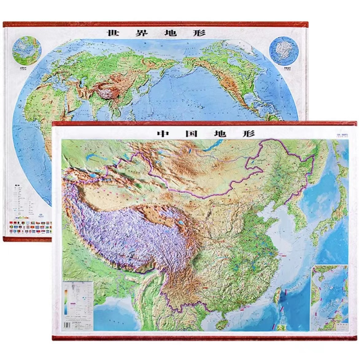 中国+世界立体地形图套装 立体地图挂图 约1.26*0.9米