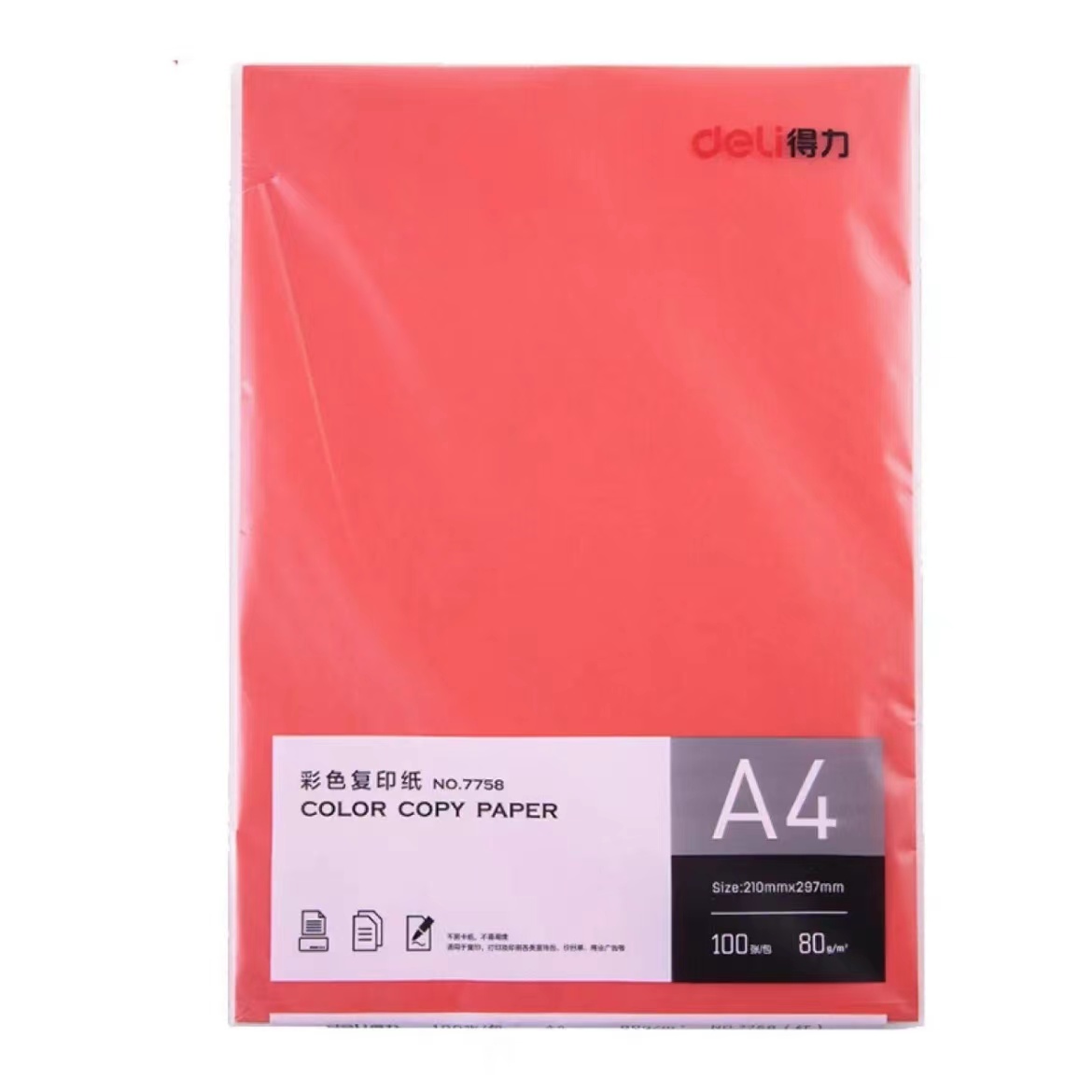 商品名称:得力彩色复印纸红色打印纸100张/包