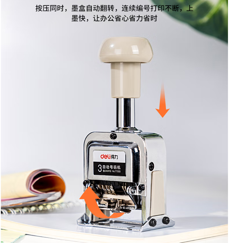 得力(deli)3位财务办公自动号码机/打码机 盖印清晰 财务用品 办公用品 77333