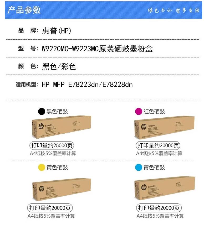 商品名称:惠普(HP)W9220MC粉盒硒鼓/碳粉 适用E78223\/78228DN W9223MC红色粉盒(约20000页)