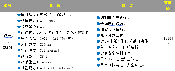商品名称:碎乐 碎纸机C310i 4*30mm