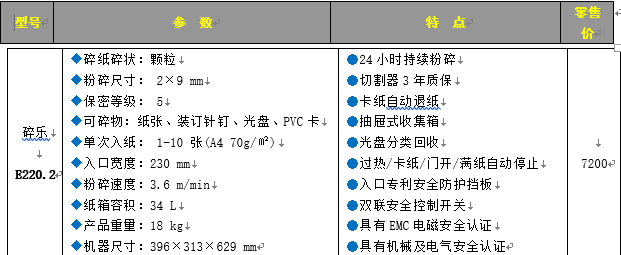 商品名称:碎乐 碎纸机E220.2 2*9mm
