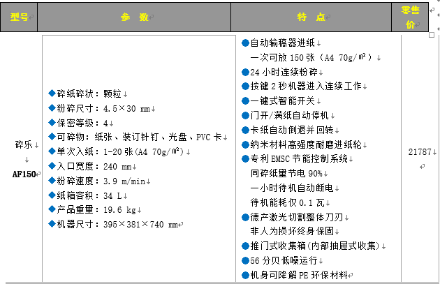 商品名称:碎乐 碎纸机AF150 4.5*30mm