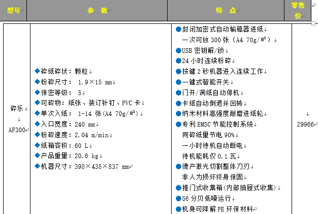 商品名称:碎乐 碎纸机AF300 1.9*15mm