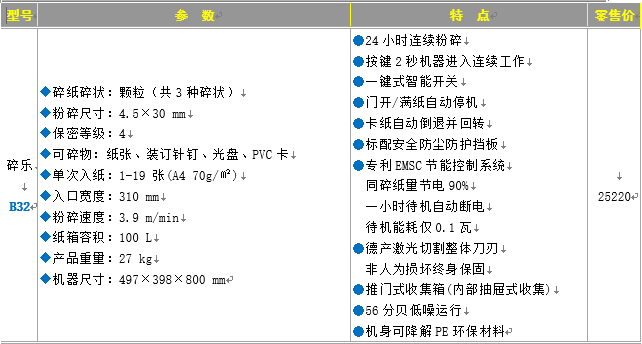 商品名称:碎乐 碎纸机B32 4.5*30mm