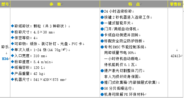 商品名称:碎乐 碎纸机B34 4.5*30mm